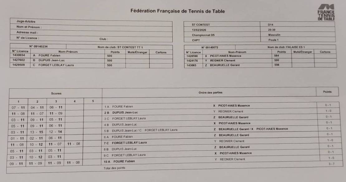 "Falaise est venu avec du lourd : deux 560 et un 500. Le résultat n'est pas à l'image des matchs où des sets auraient pu tourner à notre avantage. Le meilleur a été donné par chacun et tous y ont pris du plaisir" - Etienne, capitaine de D5.